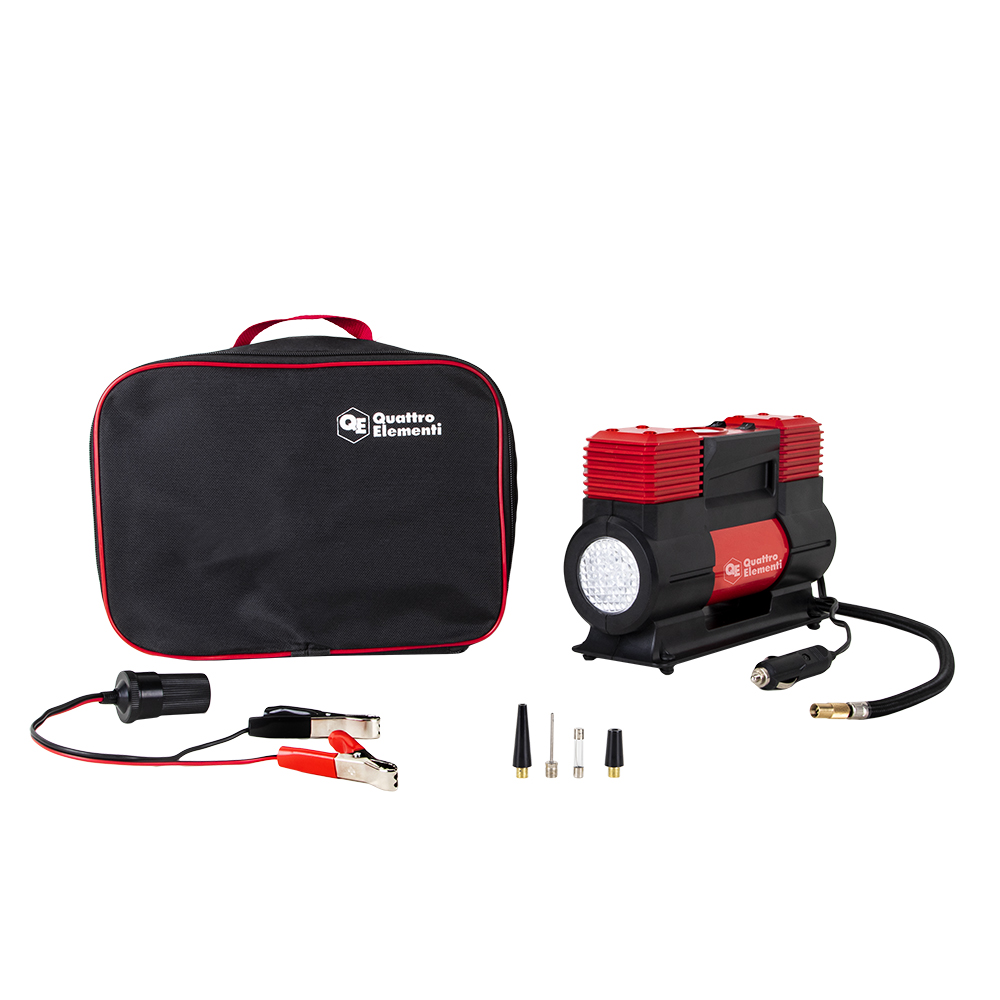 Комплектация - компрессор, сумка для хранения, набор насадок в комплекте, пневматический шланг в оплетке