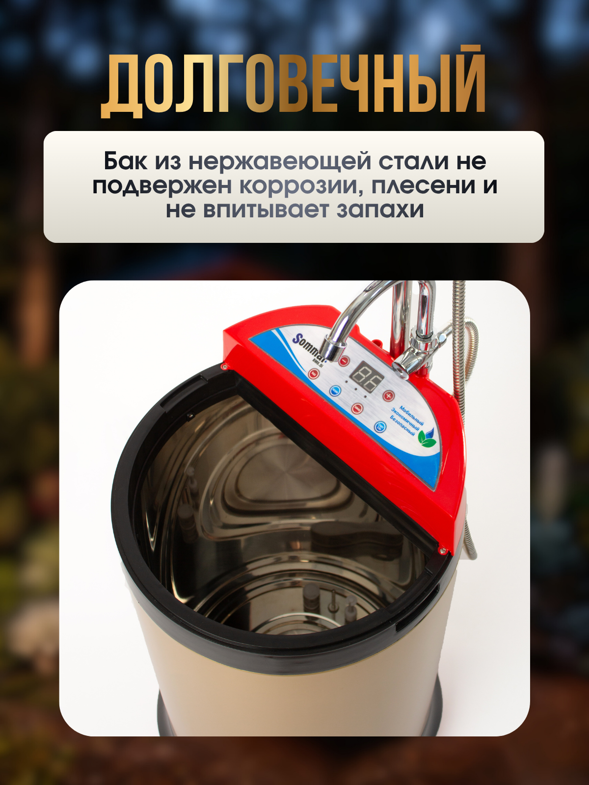 Залейте в него до 60 л воды и вся семья сможет насладиться водными процедурами в любом удобном месте, где есть электричество. Кстати, в мобильном душе Sommar в обязательном порядке используется УЗО (устройство защитного отключения), поэтому он полностью безопасен в использовании в отличии от более дешевых аналогов.