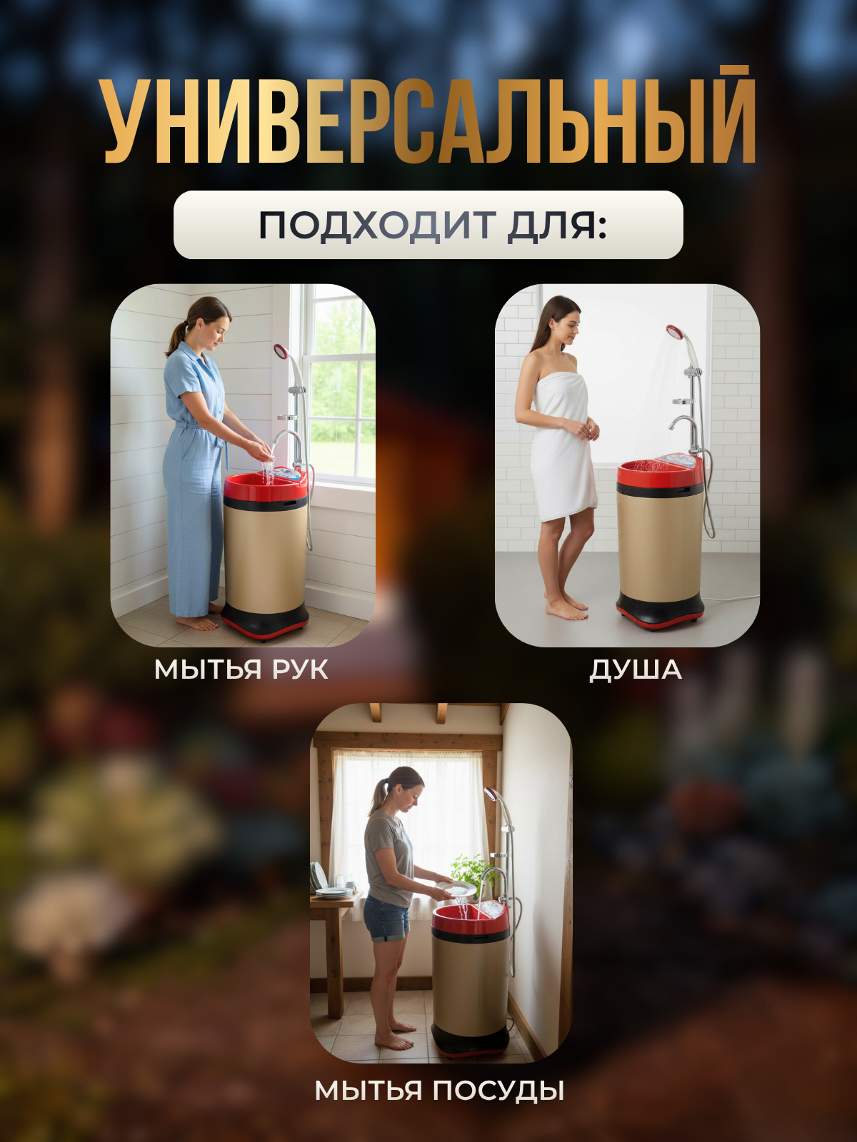Представьте, как приятно после трудового дня на дачном участке или просто в жаркий день на природе ощутить домашний комфорт и принять душ. Самостоятельно настроить температуру, помыть руки или освежиться под напором воды из душевой лейки.