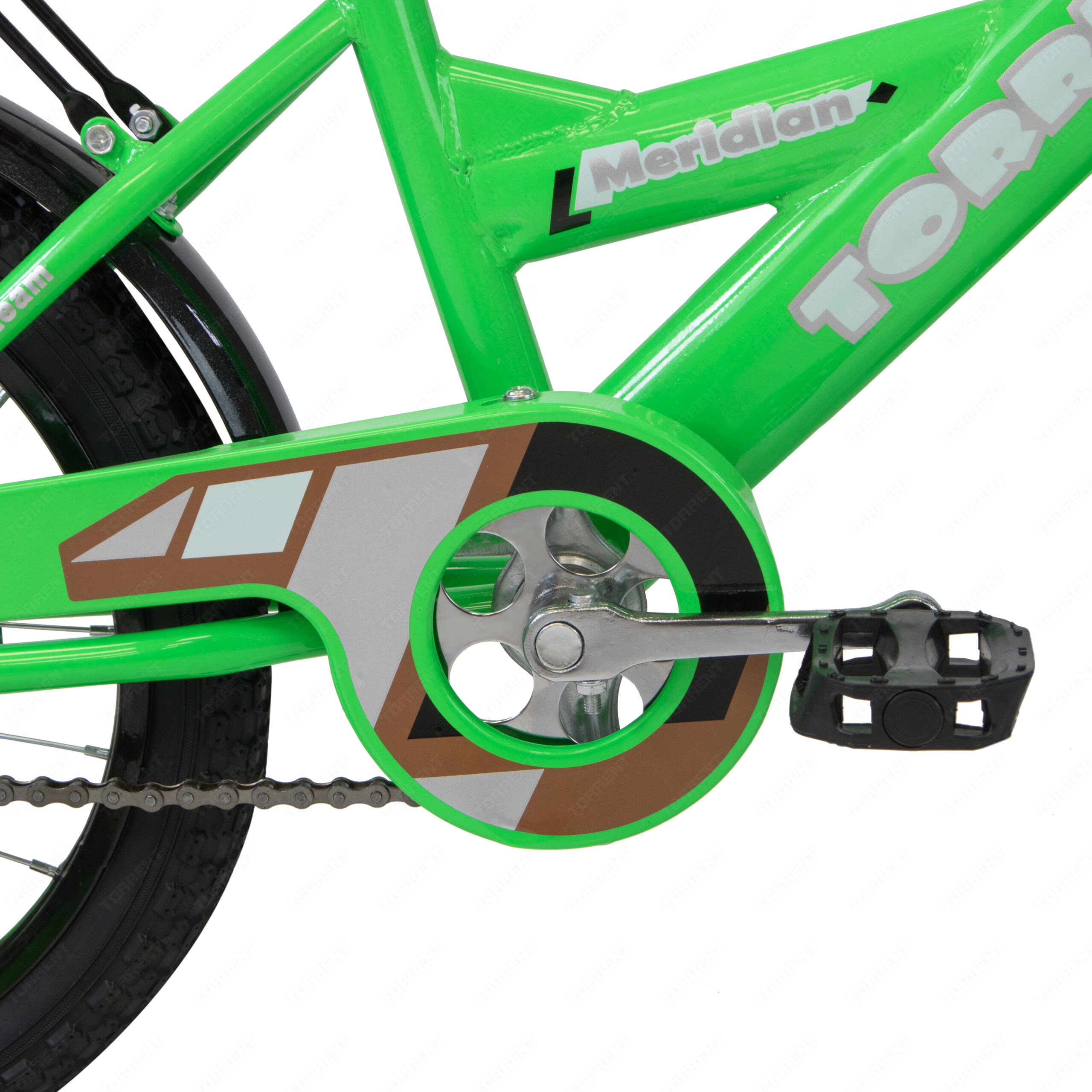 Боковые колеса помогают ребенку привыкнуть к транспортному средству и минимизируют получение травм в период обучения езды на велосипеде. Когда юный байкер освоит катание на велосипеде с поддерживающими колесами, вы сможете легко убрать их и обучить ребенка езде на двух колесах. Велосипед Torrent Meridian оборудован стальной рамой. Установлены жесткая вилка, ножной и ручной тормоз. Данная модель непременно порадует Вашего ребенка, обеспечит безопасность и удовольствие от катания.