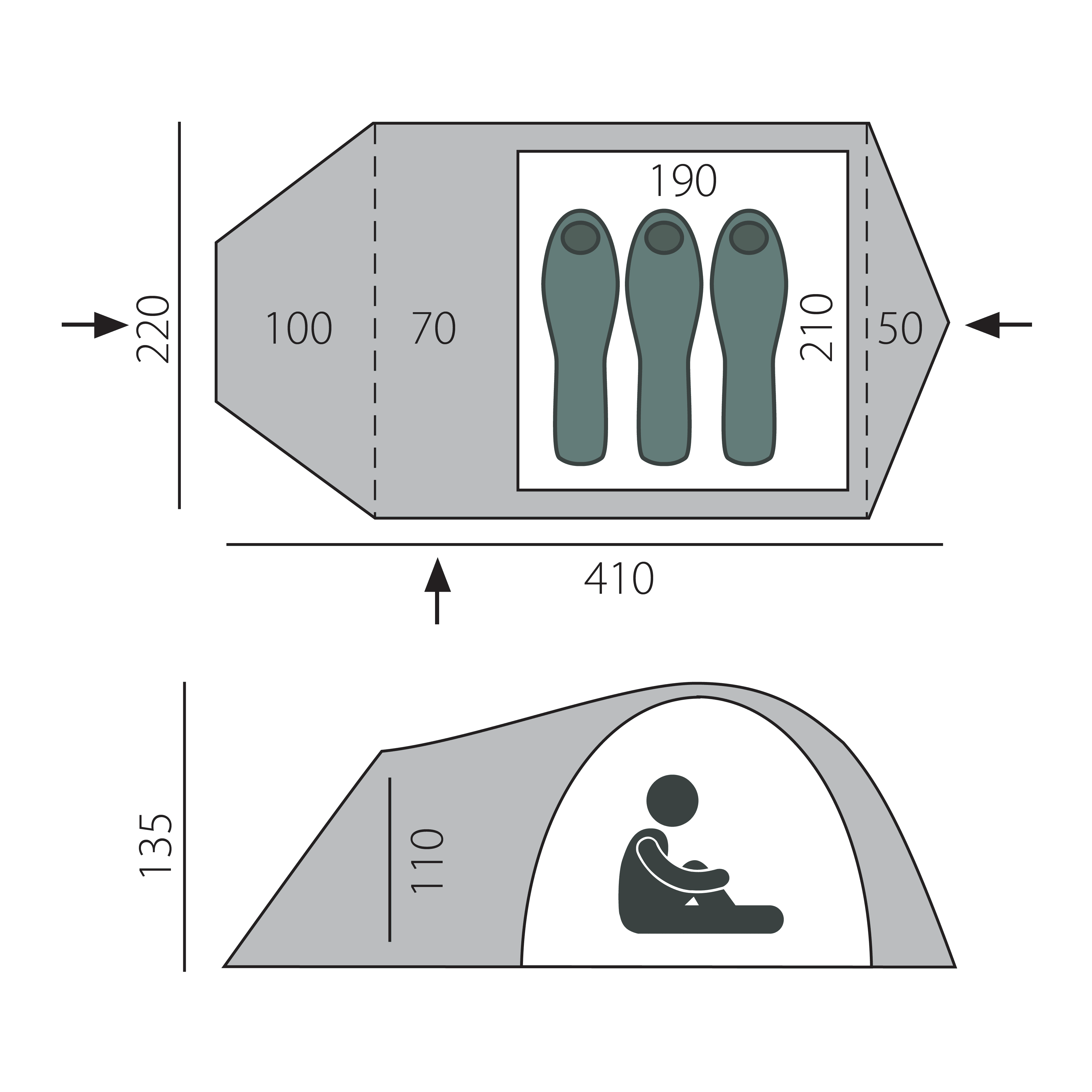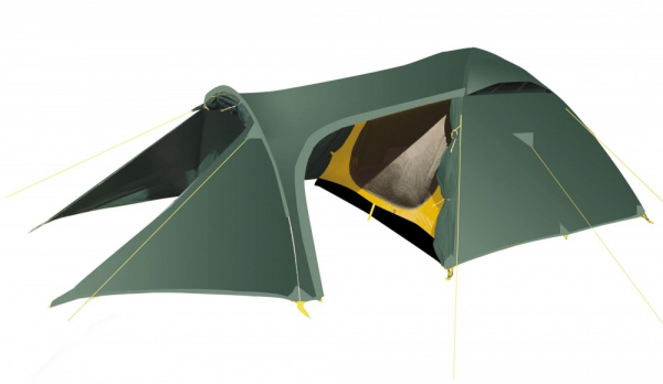 Внешний тент палатки устойчив к ультрафиолетовому излучению и имеет пропитку, задерживающую распространение огня.