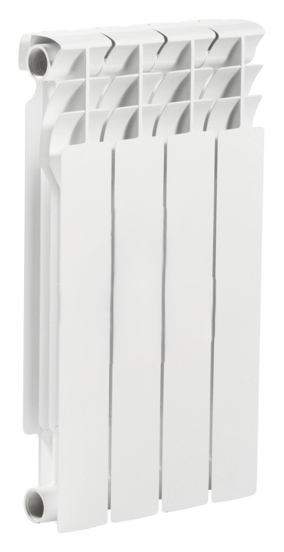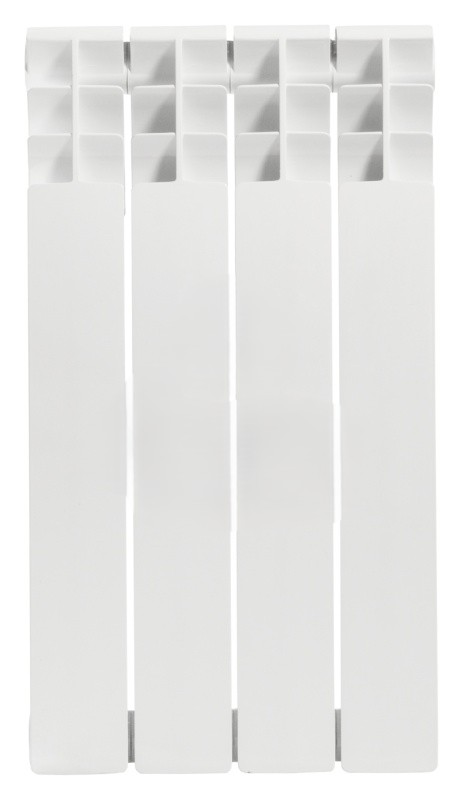 Радиаторы биметаллические секционные относятся к конвективно-радиационному типу приборов. По внешнему виду они мало отличаются от алюминиевых, имеют все их достоинства, но практически лишены их недостатков. Конструкция их такова, что теплоноситель в них не контактирует (или почти не контактирует) с алюминием. Он движется по стальным трубкам, которые в свою очередь передают тепло алюминиевым панелям, а те нагревают окружающий воздух. Соотношение радиационной и конвекционной составляющих теплового потока такое же, как у алюминиевых.