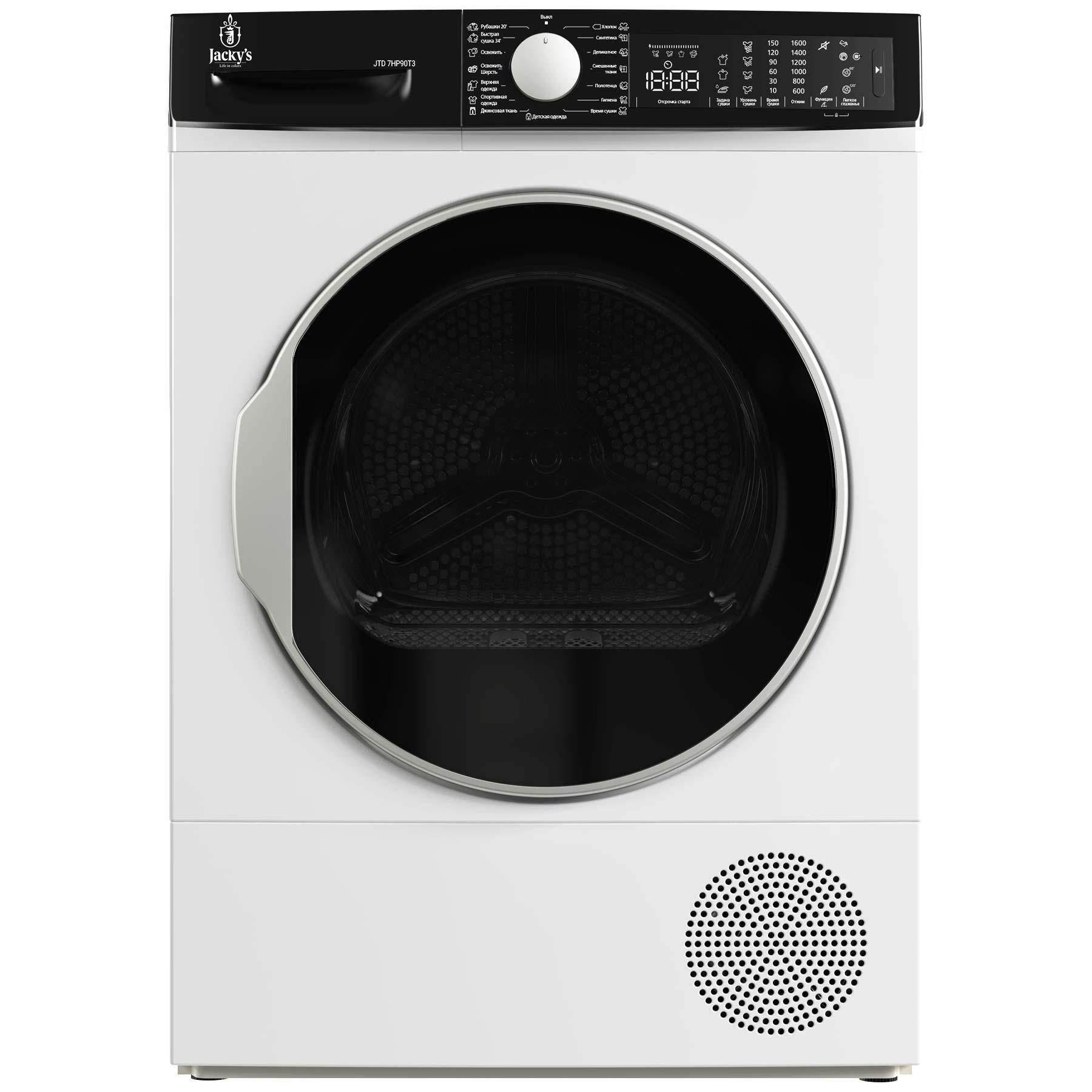 Сушильная машина Jacky`s предназначена для домашнего использования, поэтому имеет стандартные габариты и большое разнообразие программ. Так как она устанавливается отдельно, нужно заранее найти достаточно места в помещении. Тип сушки белья в данной модели — конденсационная с тепловым насосом. Это самый распространенный вариант, так как его просто реализовать и в работе он надежен, безопасен и удобен.