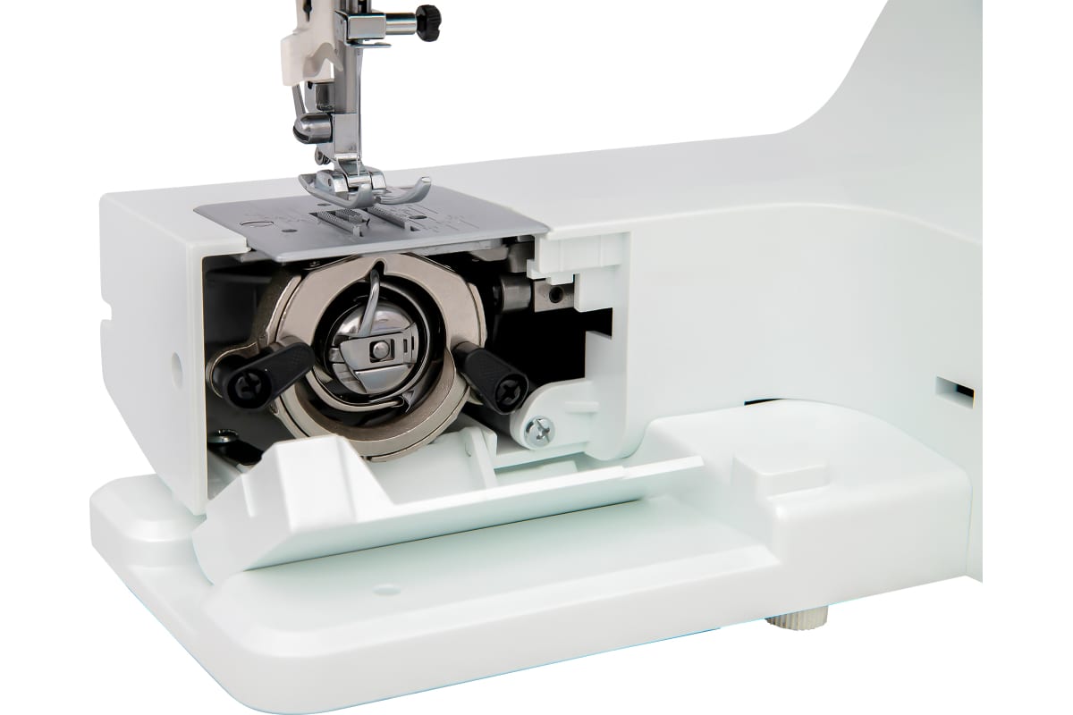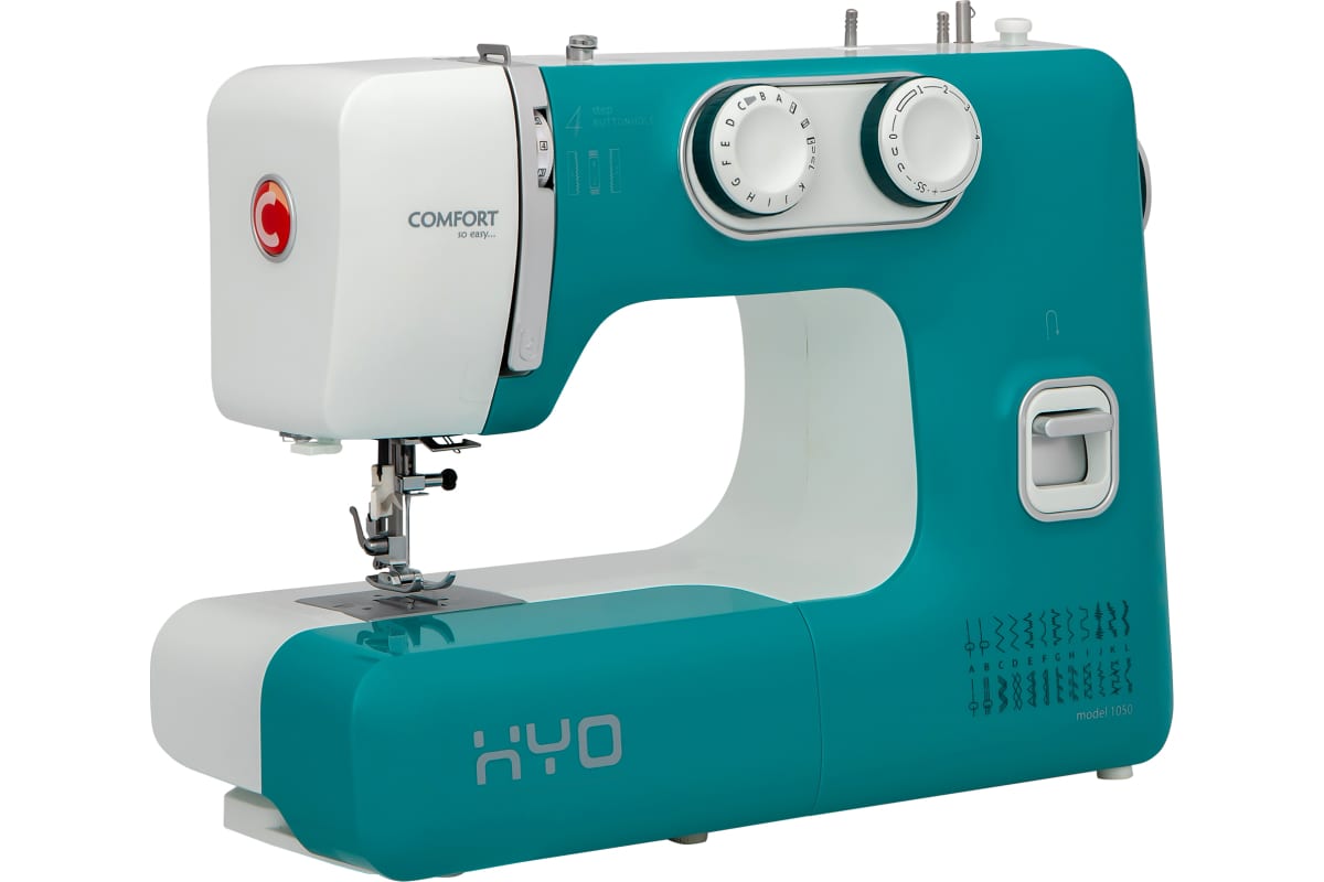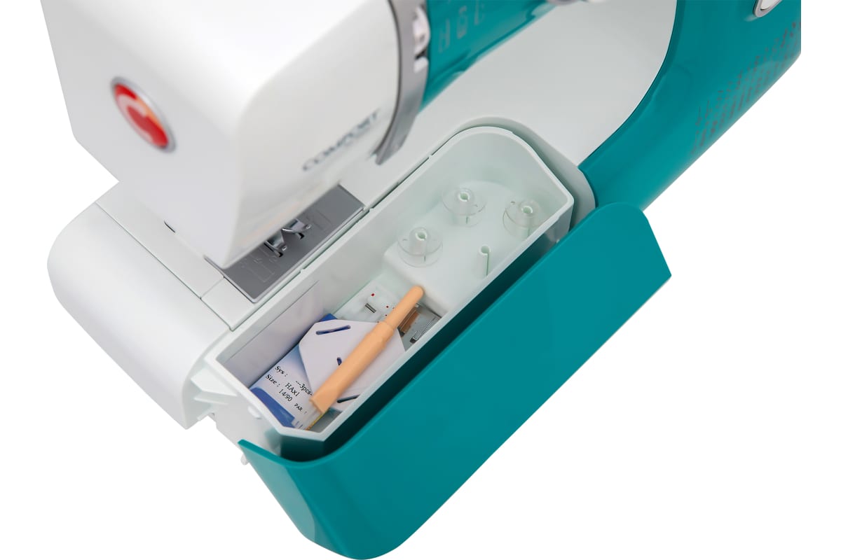 Модель выполнена в бирюзовом цвете с отделкой под матовую сталь. Маховое колесо и переключатели имеют прорезиненные компоненты изумрудного цвета. Швейная машинаComfort1050 не перегружена лишними операциями и рекламными функциями. 24 строчки и полуавтоматическое выполнение петли под пуговицы одновременно обеспечивают опытного пользователя всем необходимым для полноценного изготовления любой одежды из любых материалов и, в то же время позволят начинающим не «запутаться» в ненужных опциях и максимально комфортно и быстро освоить полезное и интересное хобби.