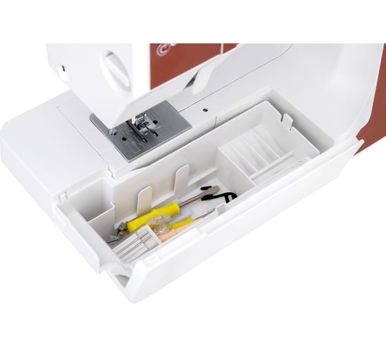Универсальная швейная машина с большим количеством операций, работает со всеми видами тканей, в том числе джинса и трикотаж.
