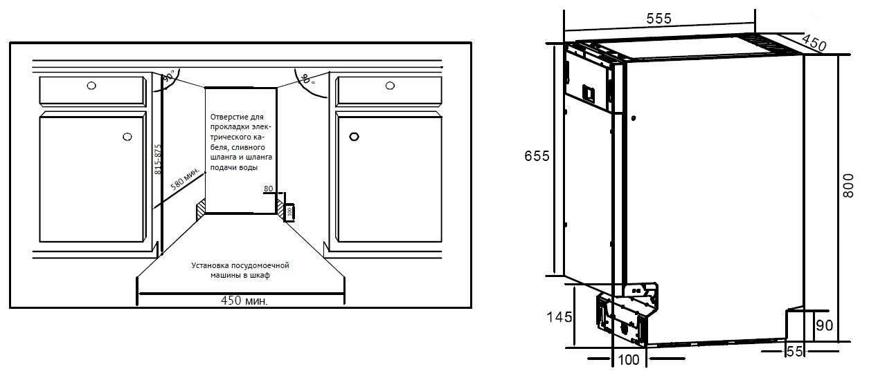 Размер ниши для встраивания (ВхШхГ), мм 820х450х580