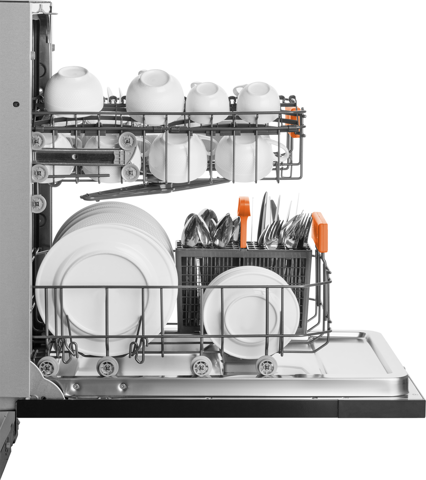 Индикаторы соли и ополаскивателя, всегда напомнят вам, когда нужно дозаправить посудомоечную машину для её эффективной и бесперебойной работы! Электронное управление, интуитивно понятное даже человеку, никогда ранее не работавшему с подобной техникой, сделает процесс запуска быстрым и лёгким! Возможность дозагрузки посуды, на начальном этапе мойки будет особенно удобна в случае, если вы забыли поместить в машину забытую на столе кастрюлю или тарелку