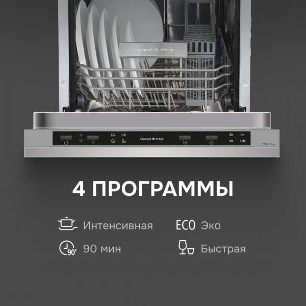 Посудомоечная машина Zigmund & Shtain DW 314.4 – это многофункциональный и удобный в использовании помощник на кухне. Она легко отмоет и тщательно ополоснет 10 комплектов посуды, не оставив следов моющих средств.