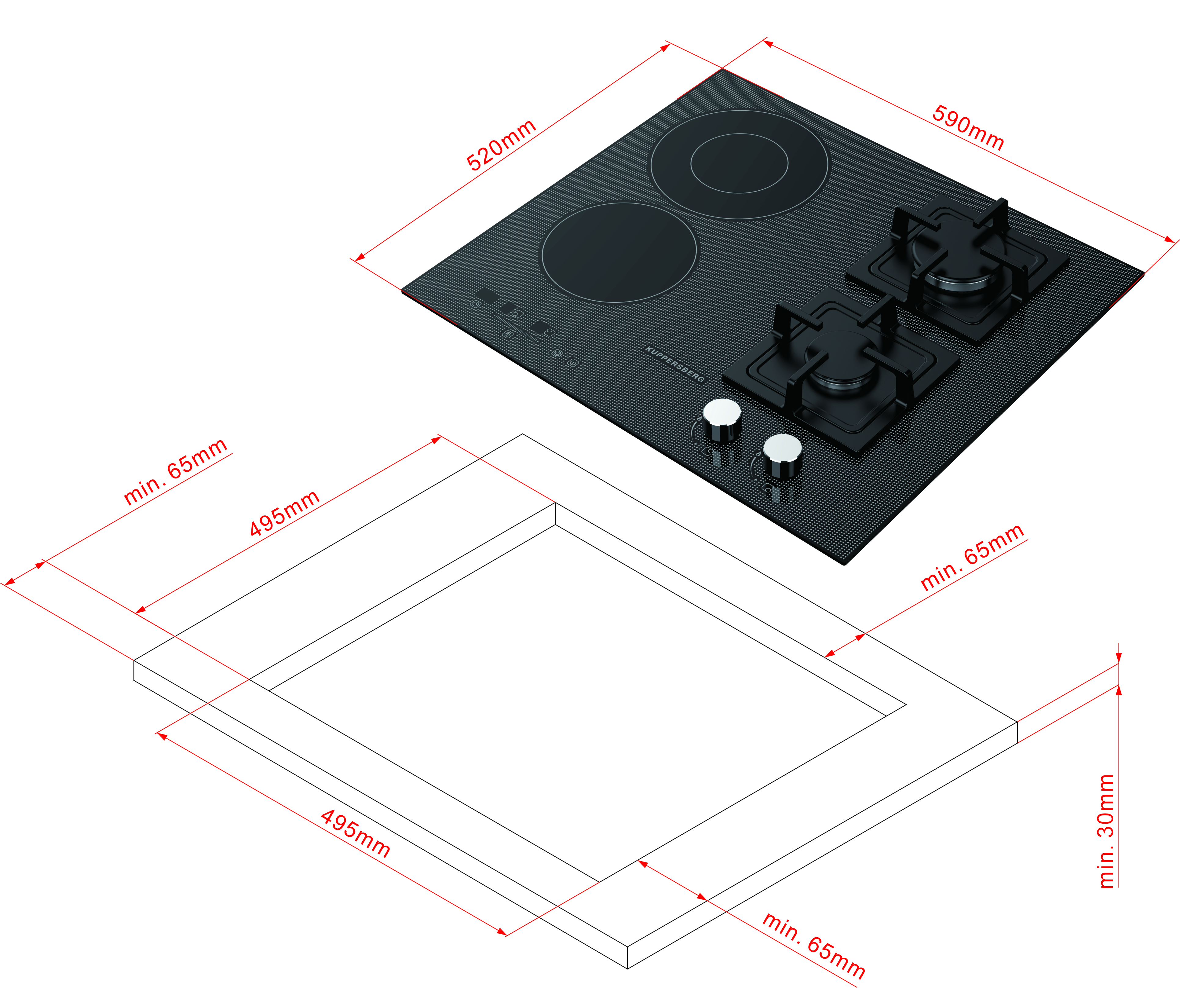 Размер ниши для встраивания (ШхГ), мм 495×495