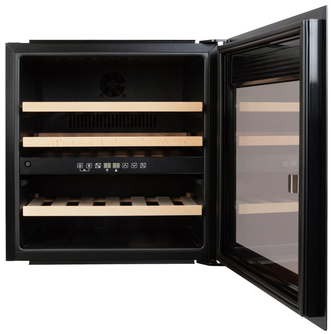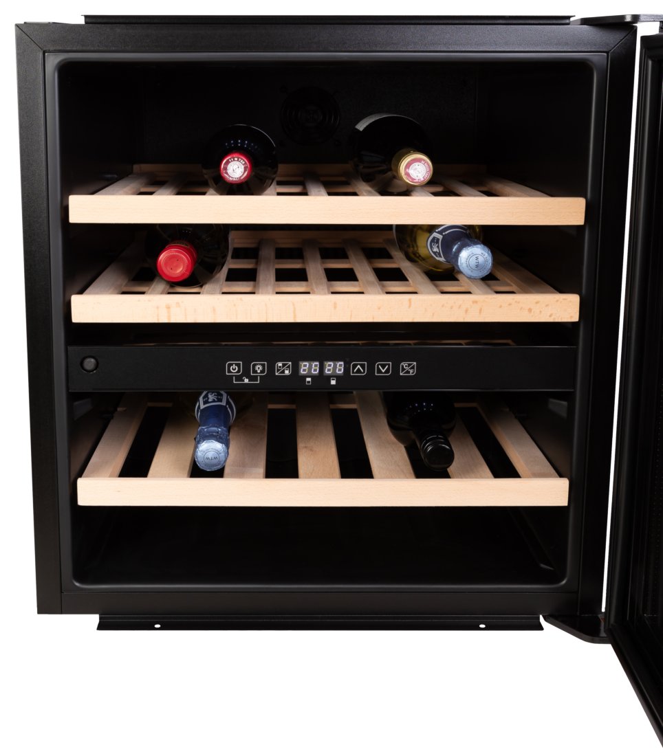 Внутренний объем составляет 85 литров, что позволяет хранить до 36 бутылок вина объемом 0.75 литра каждая. Три деревянные полки обеспечивают необходимую организацию пространства и удобство использования. Сенсорное управление и внутренний светодиодный дисплей делают процесс установки и контроля температуры простым и удобным.