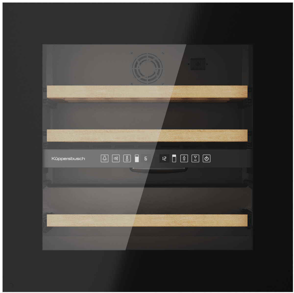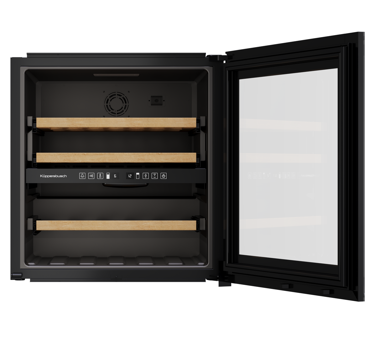 Дизайн выполнен в строгом стиле: черное стекло обеспечивает элегантный внешний вид, который будет гармонично сочетаться с любым интерьером. Электронное управление с цифровым дисплеем делает использование шкафа удобным и простым. Регулировка температуры осуществляется электронно с помощью кнопок, что позволяет точно подобрать нужный режим для хранения вина.