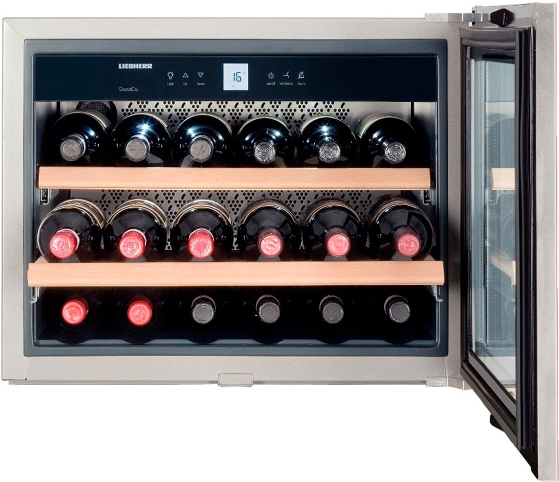 Встраиваемый винный шкаф Либхер WKEes 553 GrandCru оснащен тремя полками из натурального дерева. Две полки установлены на телескопических направляющих и выдвигаются вперед. Вы без труда достанете все, что необходимо. Фильтр из активированного угля очищает воздух от неприятных запахов.