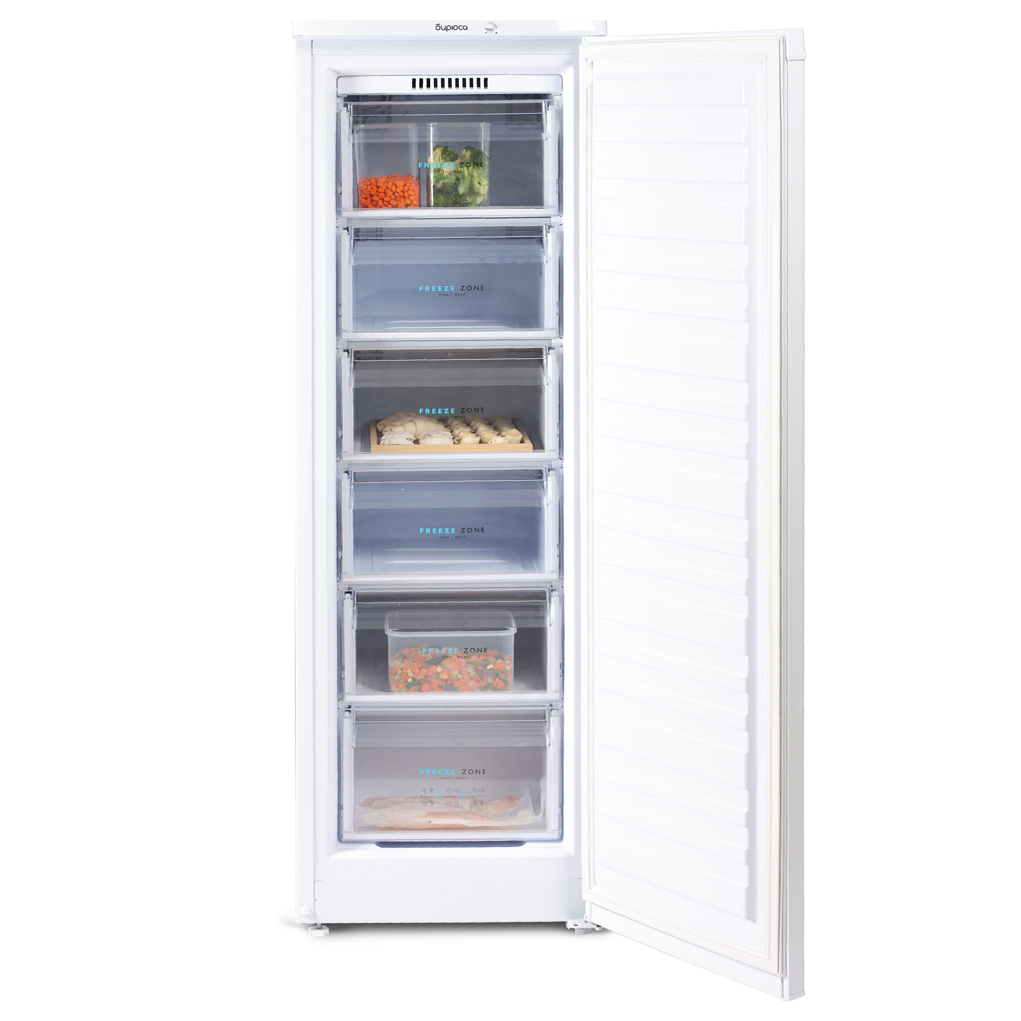 Компактная морозильная камера Бирюса 416 отличается элегантным белым цветом, что позволяет ей гармонично вписаться в любой интерьер кухни. Модель оснащена механическим управлением, которое делает её использование простым и интуитивно понятным. Устройство имеет компактные габаритные размеры — 145 х 48 х 60,5 см, что позволяет легко разместить его даже в небольших кухнях или в помещениях с ограниченным пространством. При этом полезный объем морозильной камеры составляет 114 литров, что обеспечивает достаточное место для хранения большого количества продуктов.