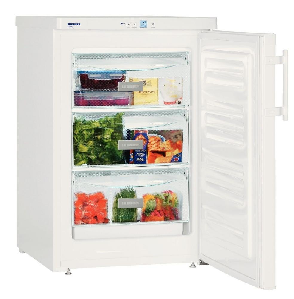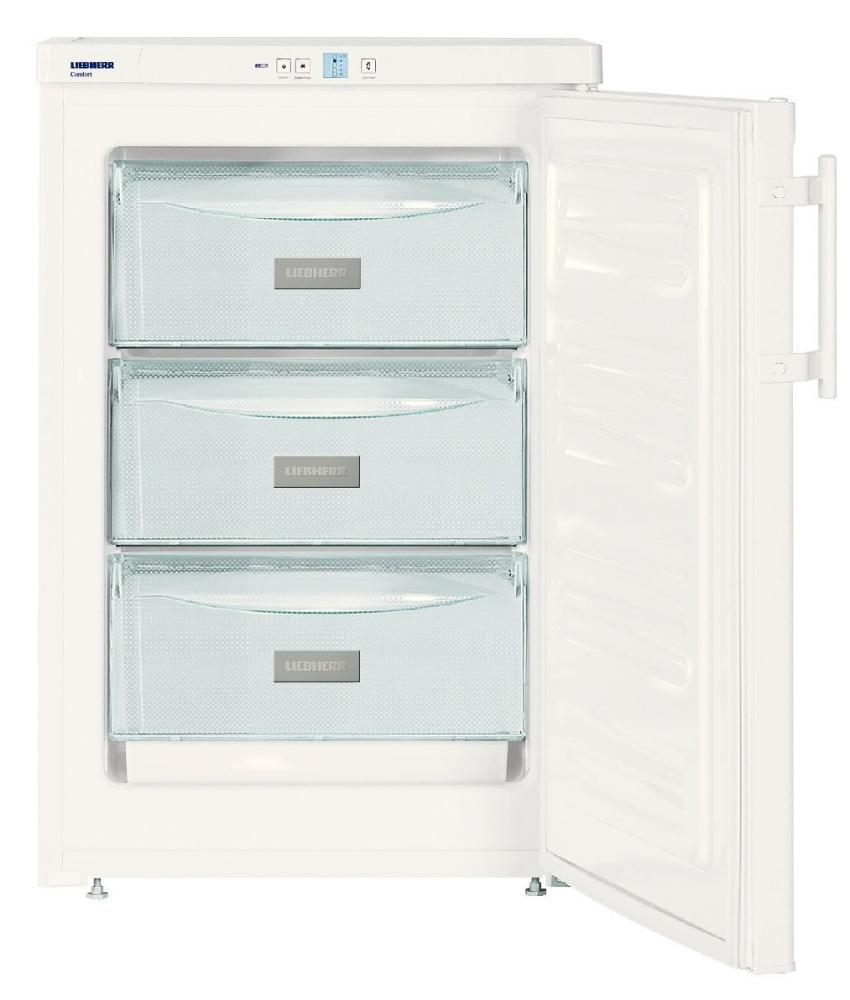 Либхер G 1223 COMFORT будет сохранять заданную температуру в течение 26 часов после отключения электроэнергии. Три ящика одинакового размера выполнены из пластика. Можно раскладывать мясные, рыбные и овощные заготовки отдельно: прозрачные передние стенки позволят легко ориентироваться, где что хранится.