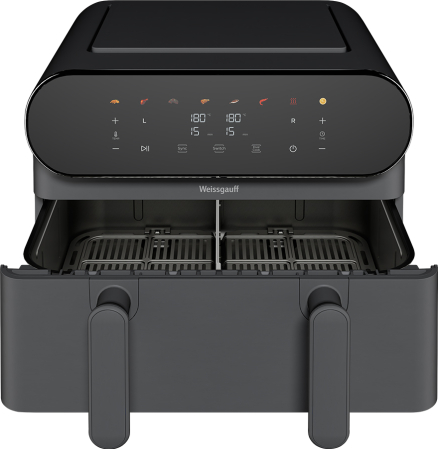 Функция Sync в аэрогриле автоматически определяет время и температуру, чтобы обеспечить синхронное завершение готовки, благодаря чему оба блюда будут готовы одновременно. Функция Dual Cook в аэрогриле, позволяет копировать настройки (время и температуру) из одной секции в другую, а так же можно готовить два разных блюда одновременно, регулируя температуру и время отдельно для каждой секции что позволит вам сэкономить большое количество времени на приготовление.