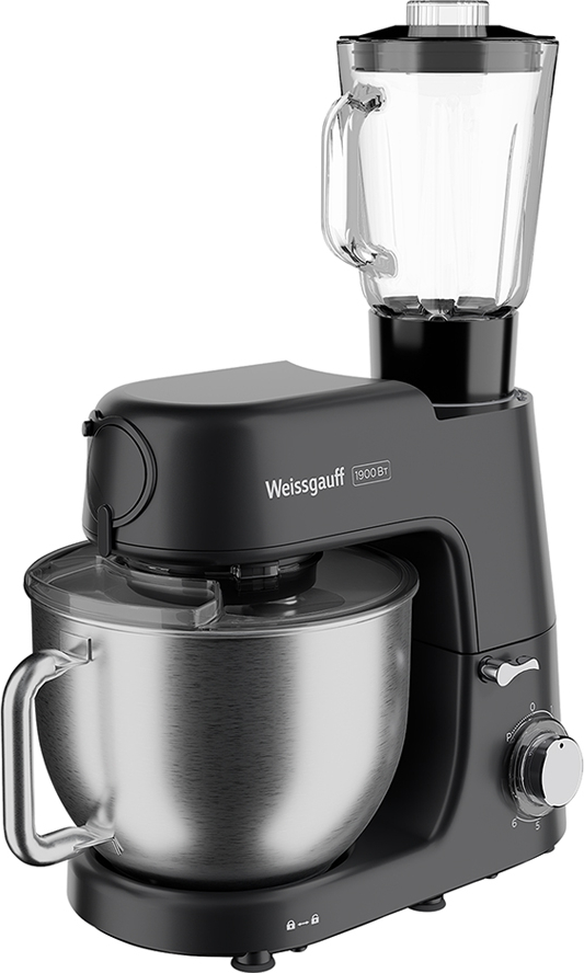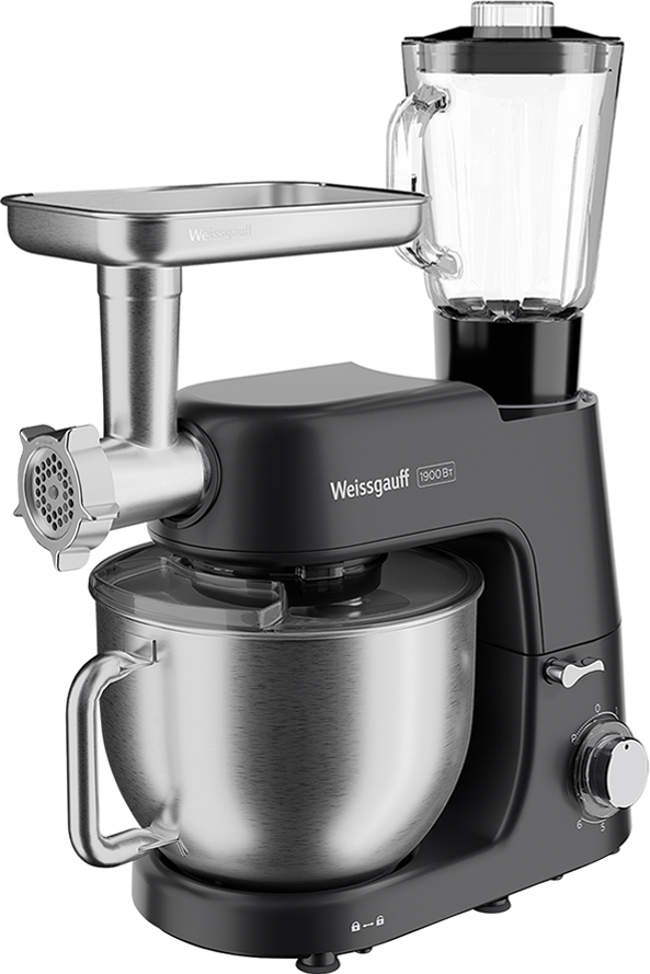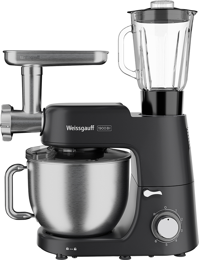 Современная многофункциональная 4 в 1 кухонная машина Weissgauff мощностью 1900 Вт с чашей объемом 7 литров из нержавеющей стали станет стильным дополнением в любой интерьер, а её максимальная комплектация включающая планетарный миксер, мясорубку, блендер-кувшин и блок овощерезку сделает прибор вашим незаменимым помощником на вашей кухне, который поможет вам воплотить в реальность самые смелые кулинарные идеи!