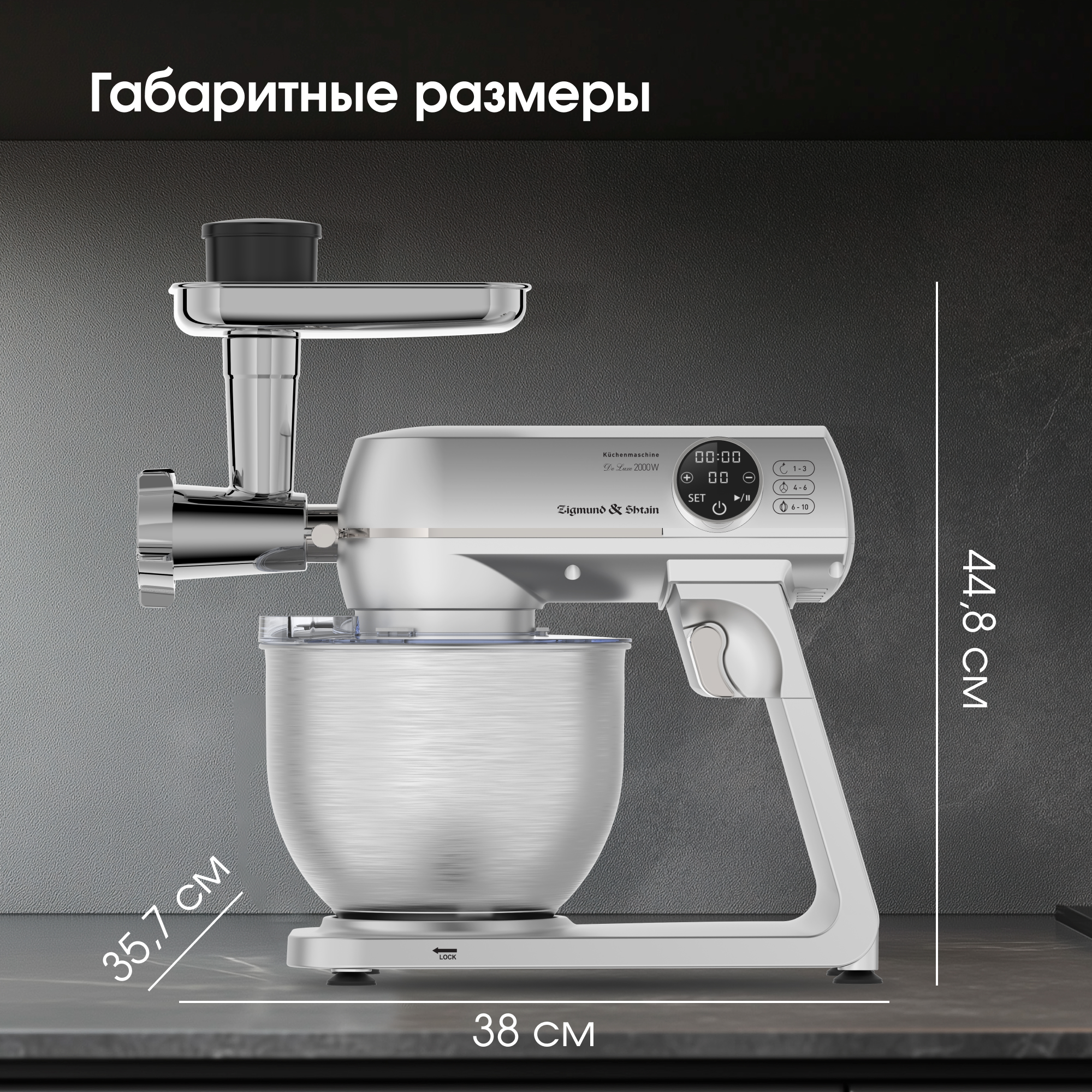 Кухонная машина De Luxe ZKM-1050 от компании Zigmund & Shtain – это многофункциональный прибор нового поколения, призванный максимально облегчить и вывести на профессиональный уровень приготовление кулинарной выпечки.