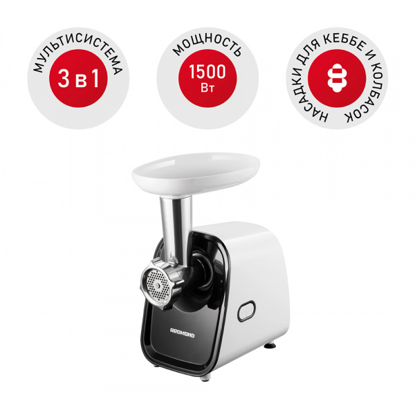 Мясорубка RMG-1238 — мультисистема с набором дисков и насадок для приготовления натуральных мясных деликатесов. Она способна не только сделать фарш крупного и мелкого помола, но и сформовать заготовки для колбасок и традиционных арабских котлет кеббе. С ней вы легко введете в меню множество оригинальных блюд с минимумом усилий и временных затрат.