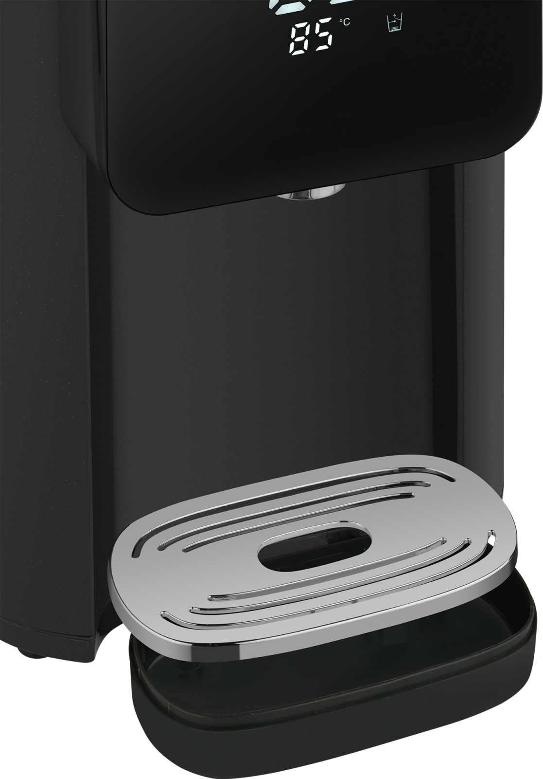 Вместительный и функциональный накопительный термопот от Weissgauff, выполненный выполненный в темно-сером цвете, обладает баком для воды объемом 5 литров, возможностью поддержания требуемой температуры в диапазоне от 45 до 95 °C, а также 6 уровнями регулировки нагрева, функциями повторного кипячения, быстрой очистки и приготовления щелочной воды.