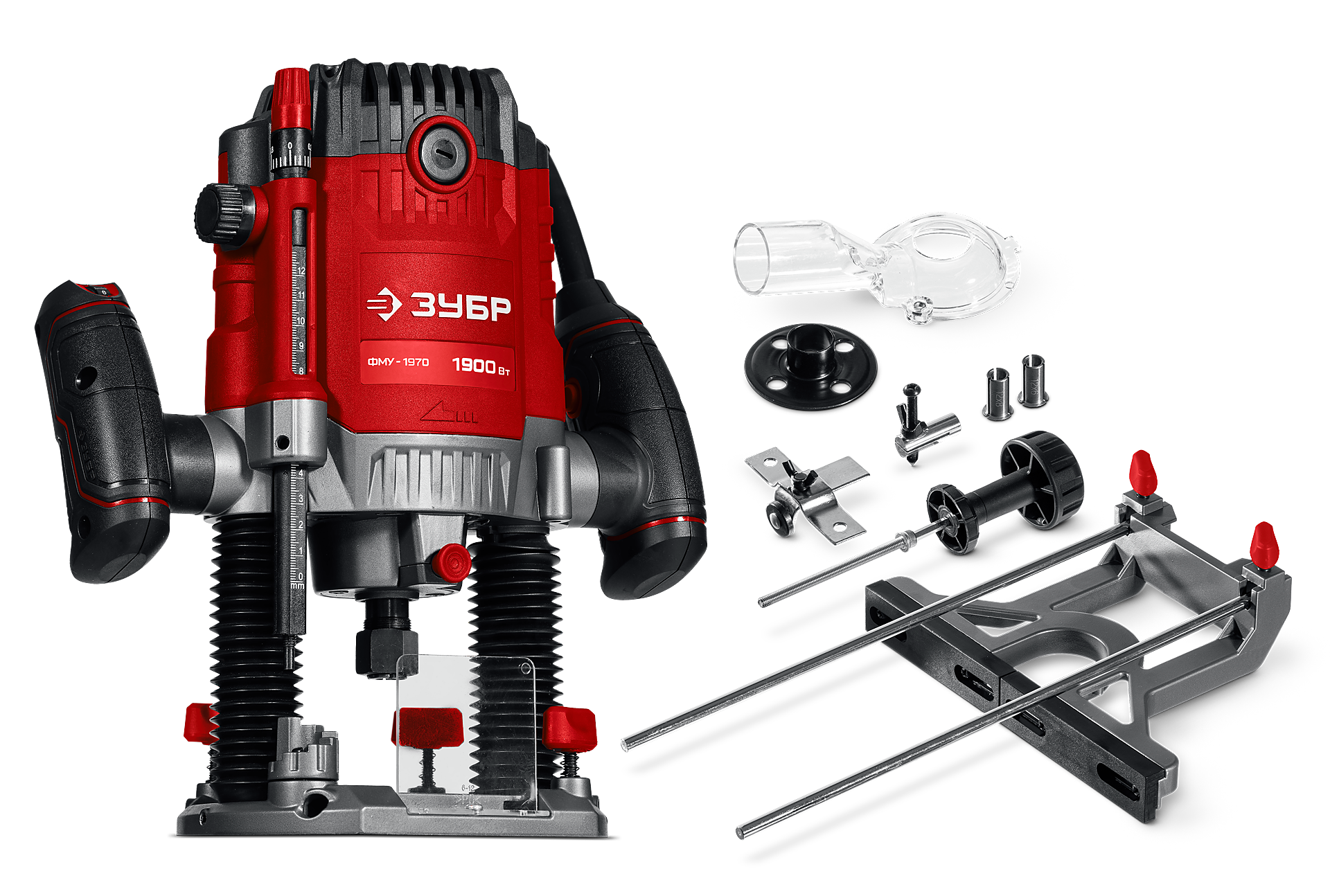 Фрезер ЗУБР – многофункциональное изделие для различных видов фрезерования (в т.ч. фигурного, по шаблону, по радиусу). Большая мощность позволяет работать с фрезами большого диаметра. Максимальная глубина погружения 70 мм позволяет выполнять пазы под замки в полотнах дверей. Точная настройка глубины фрезерования, три вида цанг для установки различных фрез, точный выбор оборотов, комплект принадлежностей для различных работ