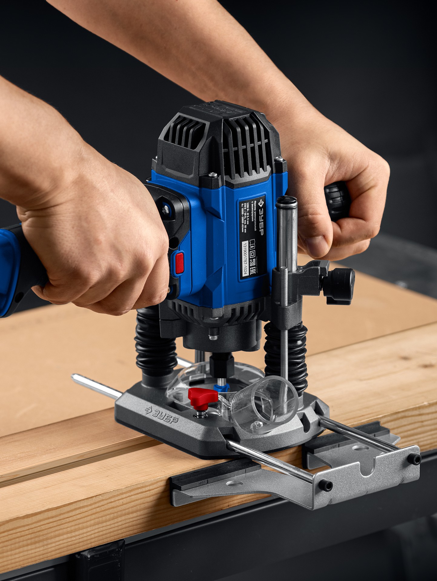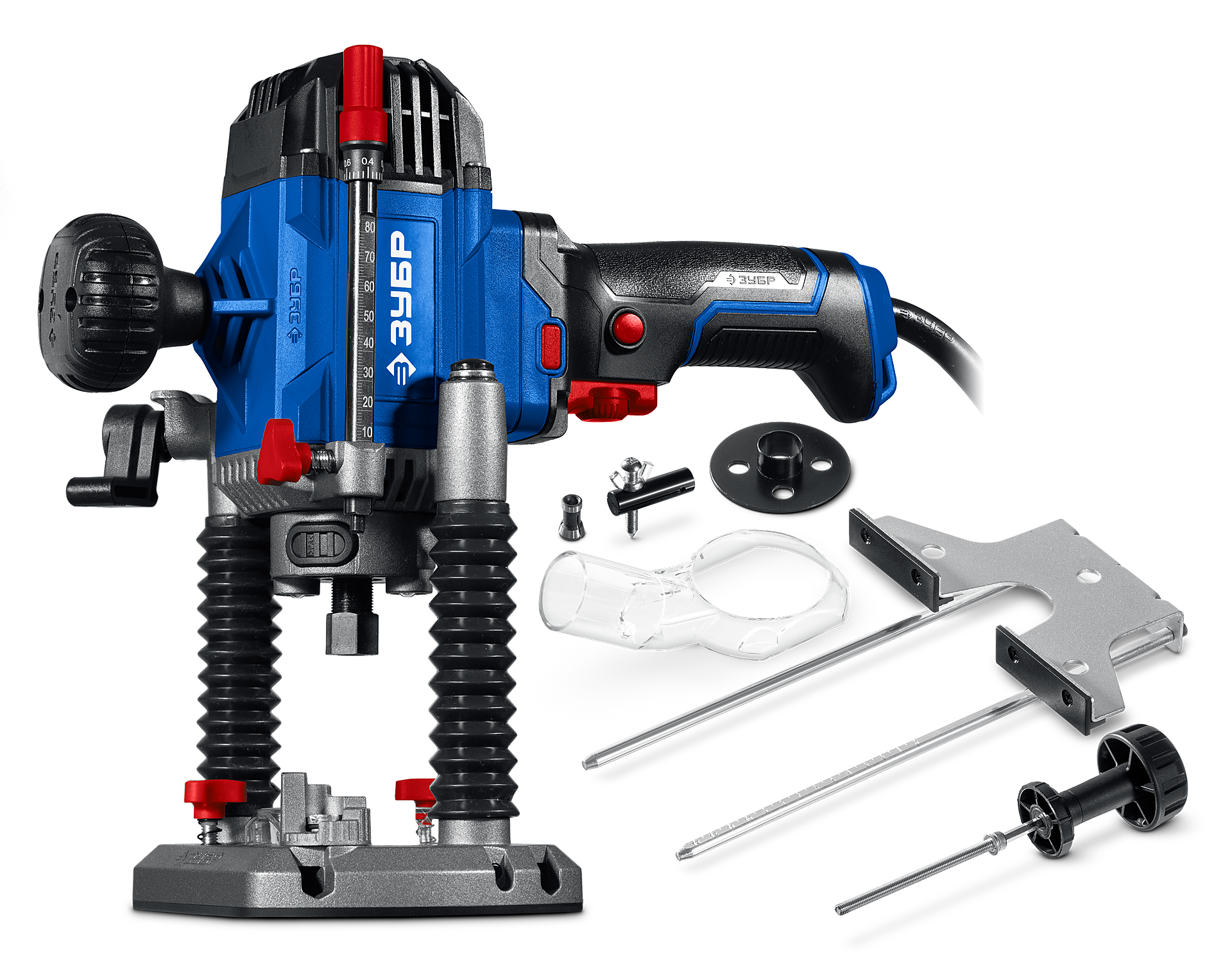 Фрезер ЗУБР серии Профессионал – многофункциональное изделие для всех видов фрезерования (продольного, фигурного, по шаблону, по радиусу) различных материалов. Мощный двигатель обеспечивает эффективную и производительную работу. Максимальная глубина погружения 80 мм позволяет выполнять пазы под замки в полотнах дверей. Удобная эргономика и бОльшая маневренность благодаря удлиненной основной рукоятке способствуют удобству при работе