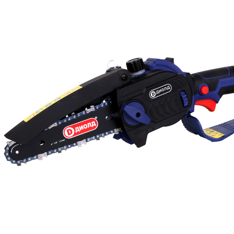 В качестве рабочего инструмента используются шина 6″ с шириной паза 1,3 мм и пильная цепь 1/4″ (37 звеньев).