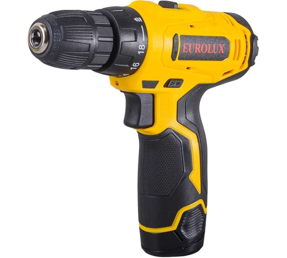 Дрель-шуруповерт EUROLUX ДА-12/2Li способна просверлить отверстие в металле, древесине или пластике, а также закрутить крепеж.