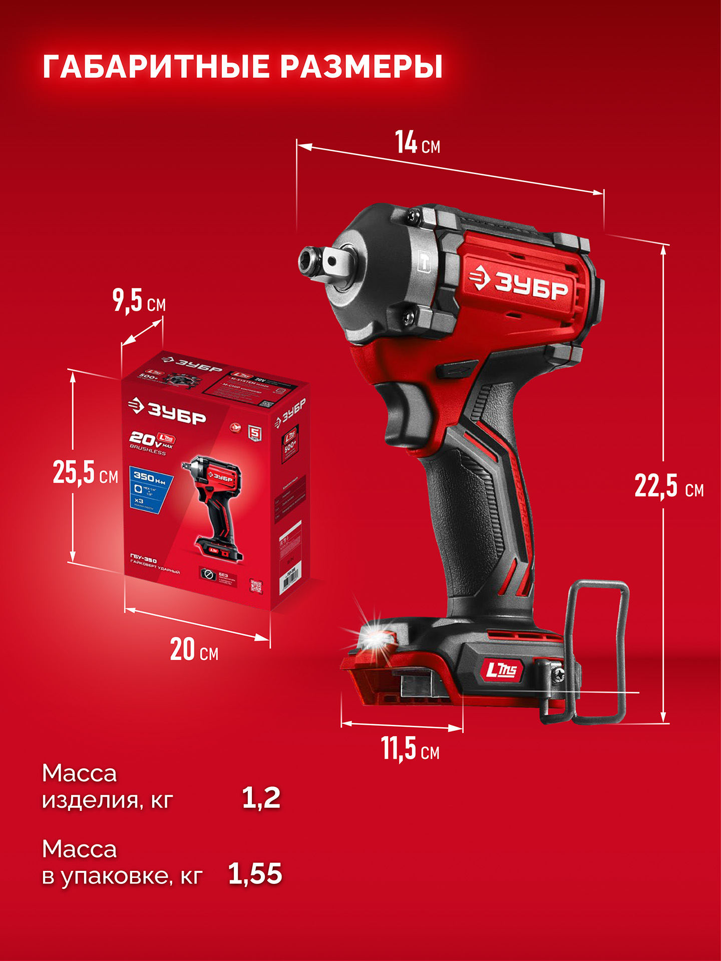 Бесщеточный ударный гайковерт ЗУБР системы LMS с максимальным крутящим моментом 350 Нм предназначен для фиксации резьбовых соединений размером до М18. Ударная функция с тангенциальным направлением удара обеспечивает эффективное заворачивание без реактивного момента на кисть оператора