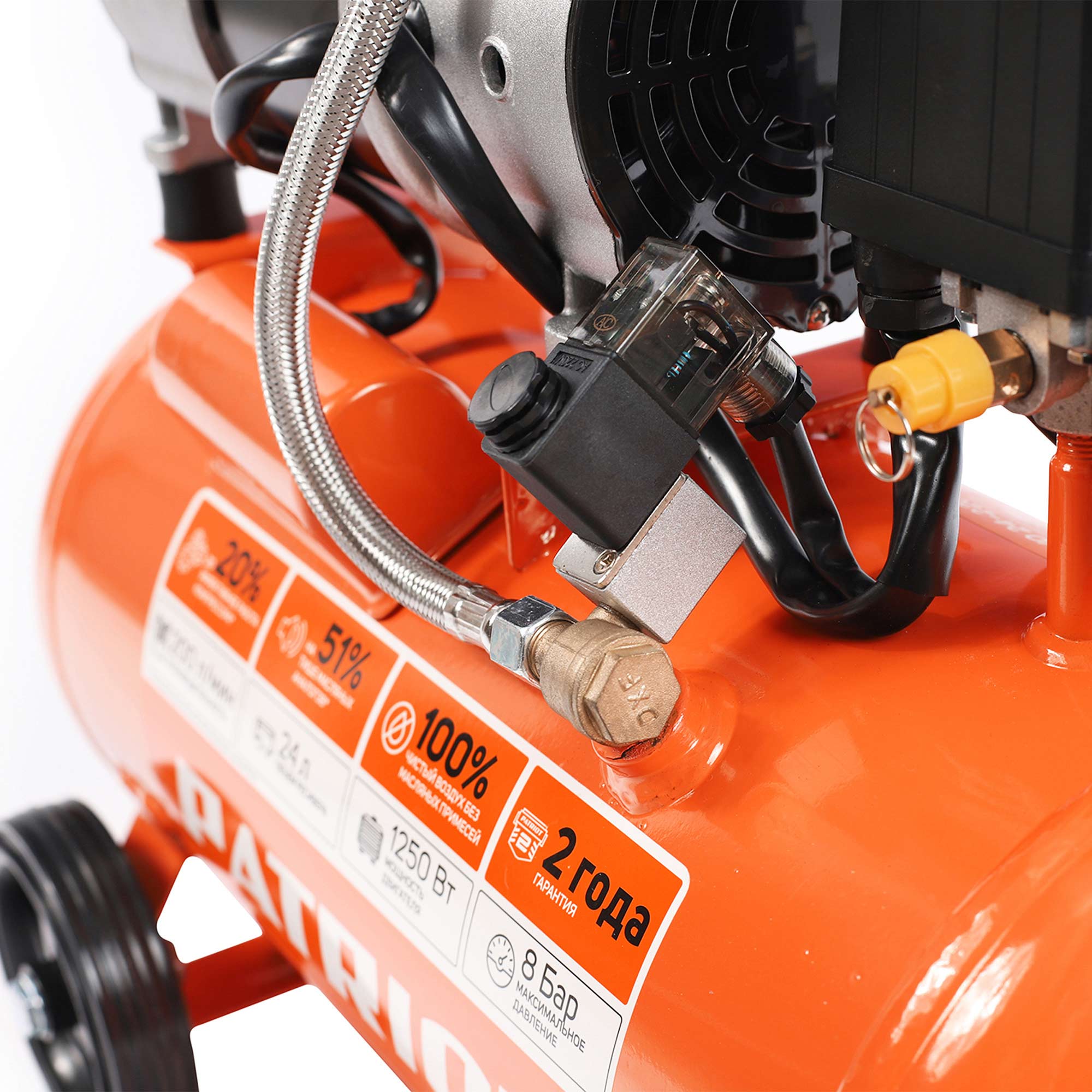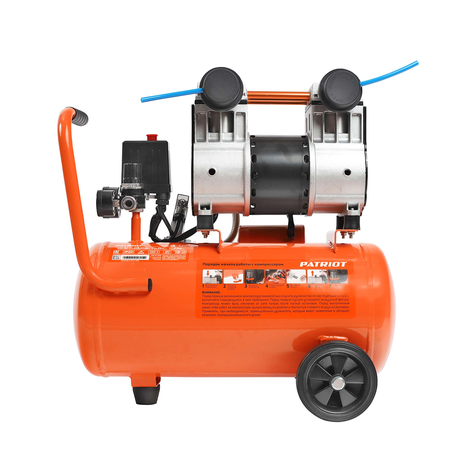 WO 24-220 – компактный и тихий безмасляный двухпоршневой компрессор, обеспечивающий пневмоинструмент чистым воздухом.