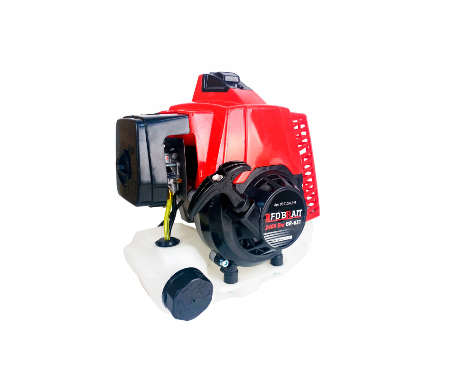 Двигатель бензиновый BRAIT BR-631 – двухтактный агрегат с воздушным охлаждением. Двигатель имеет объем цилиндра в 63 куб.см. Емкость топливного бака 1,4л. В бак заправляется смесь бензин АИ-92+масло для 2-тактных двигателей.